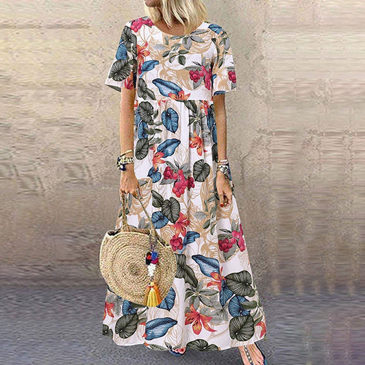 Elegante Katoenen Maxi Jurk met Bloemenprint