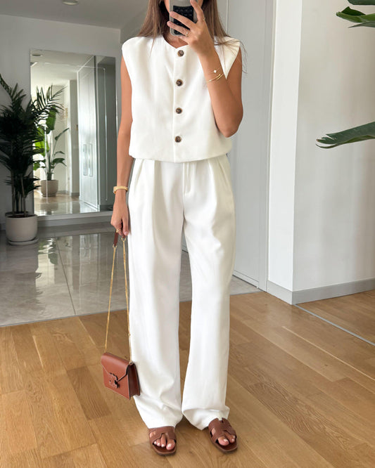 Ambrei | Classy Wit Mouwloos Vest & Broek Set