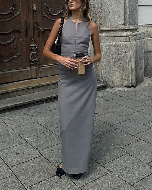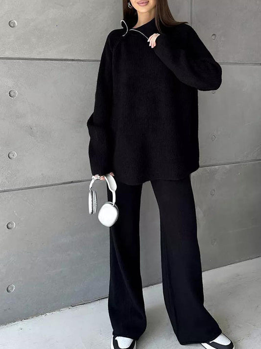 Aubriella | Stijlvolle trui met rits aan de zijkant & broek tweedelige set