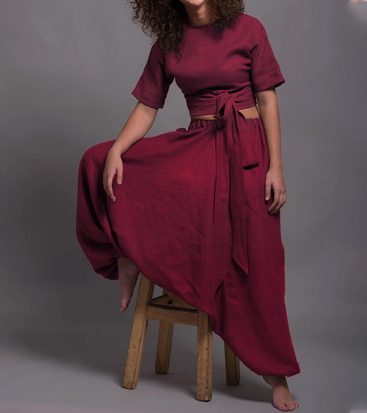 Aruna | Knus gebreide cropped trui en broek bijpassende set