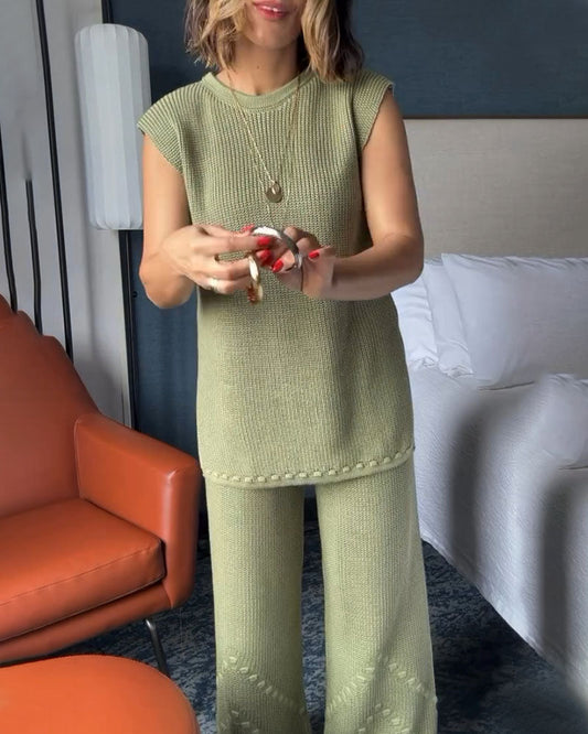 Elisabeth | Stijlvolle gebreide mouwloze tweedelige set