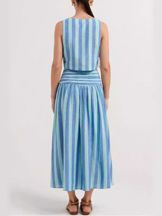 Jaya | Blauwe Streep A-lijn Swing Tweedelige Set