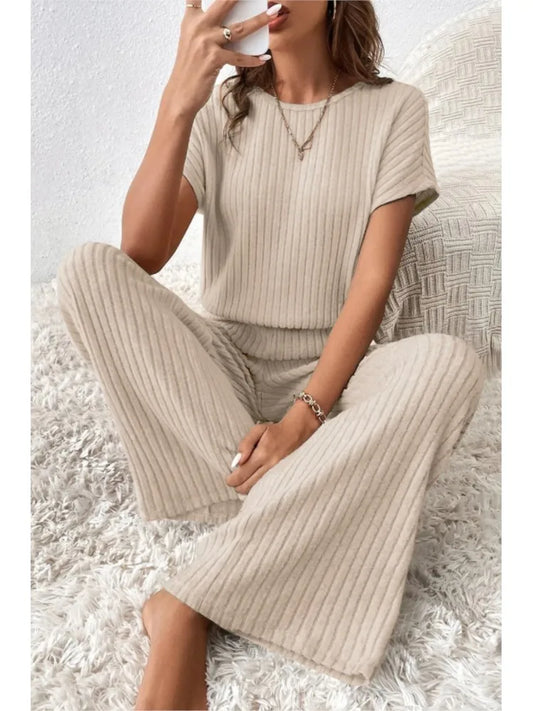 Hilka | Casual gebreide korte mouwen top en broek Set