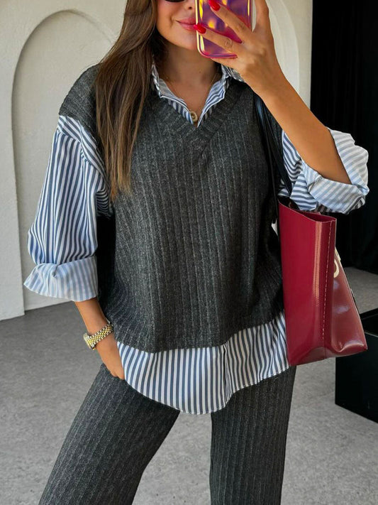Kaelin | Stijlvolle Colorblock Knit Top & Broek Set voor Vrouwen - Elegant en casual