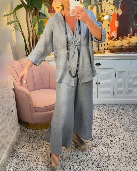 Mallory | Elegante V-hals top en broek Tweedelige set