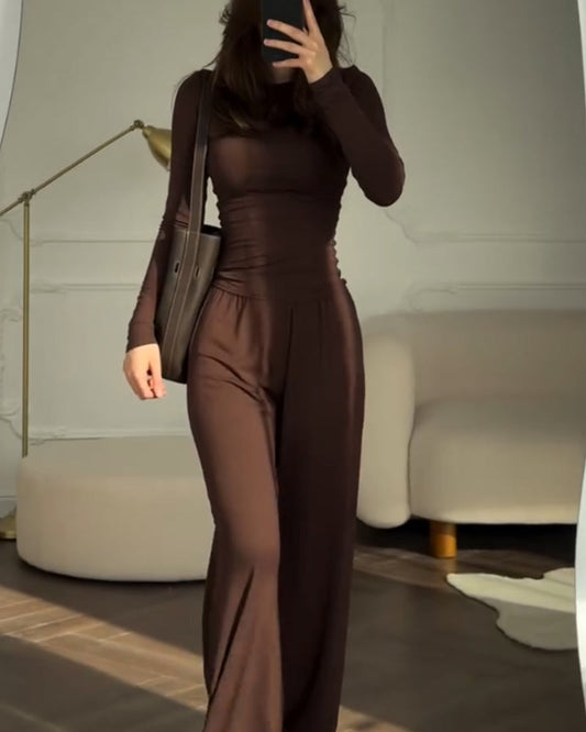 Melitina | Casual loungeset met lange mouwen en wijde broek - Zacht, comfortabel, voor alle seizoenen