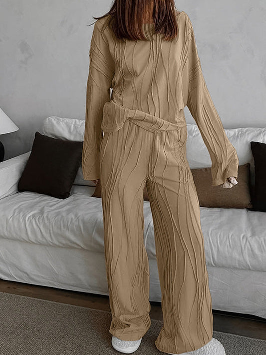 Moxie | Modieuze losse textuur- lange mouwen & broeken set