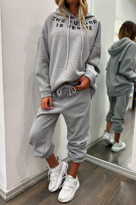Nicolasa | Sportieve chique hoodie strass en broek set
