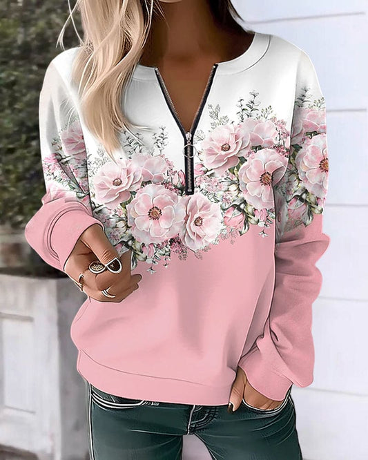 Fleur | Sweater met lange mouwen en blokdruk in kleurblokken