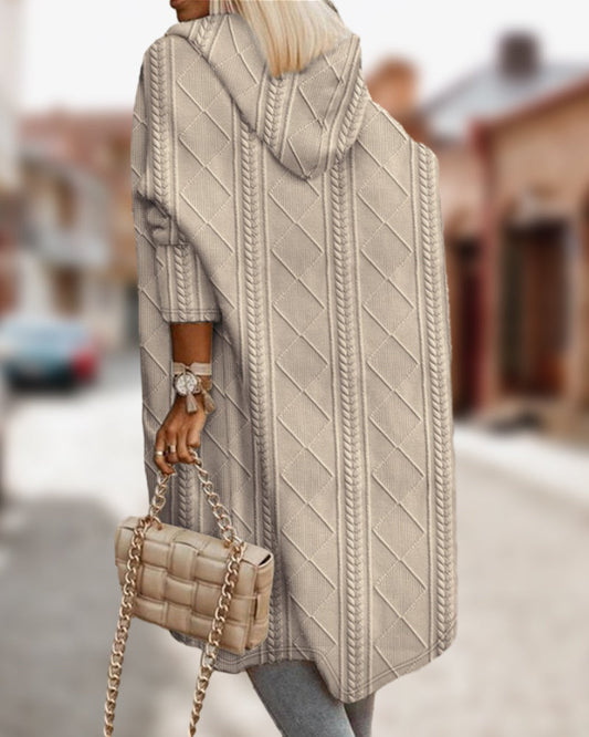 Pauline Laurent™ | Lange Getextureerde Vest Met Capuchon Voor Stijlvolle Damesmode