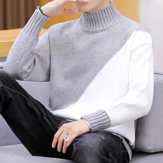 Theron | Trendy trui met hoge kraag en diagonaal kleurcontrast